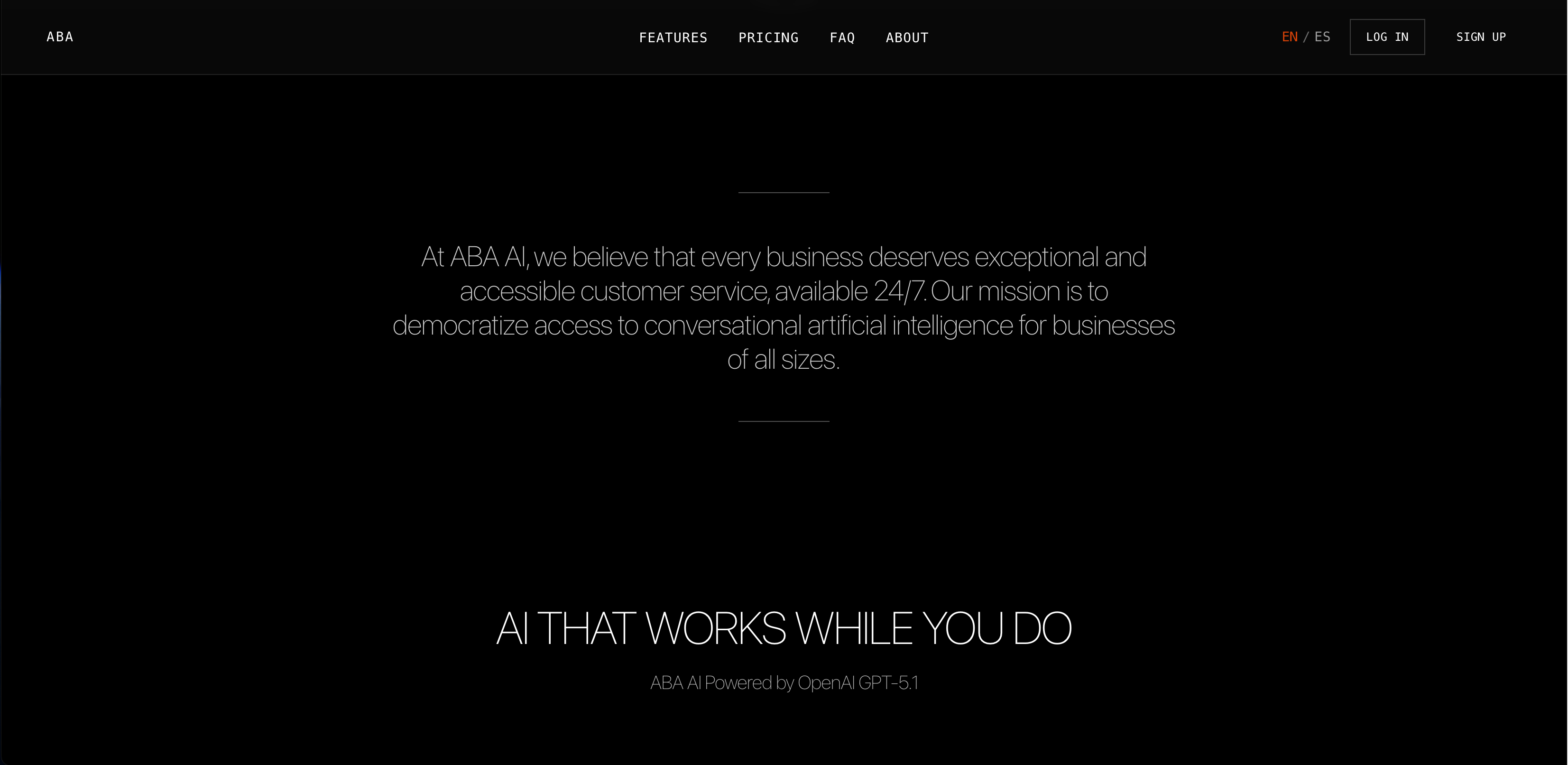 Detailed view of the landing page highlighting platform capabilities and integrations.