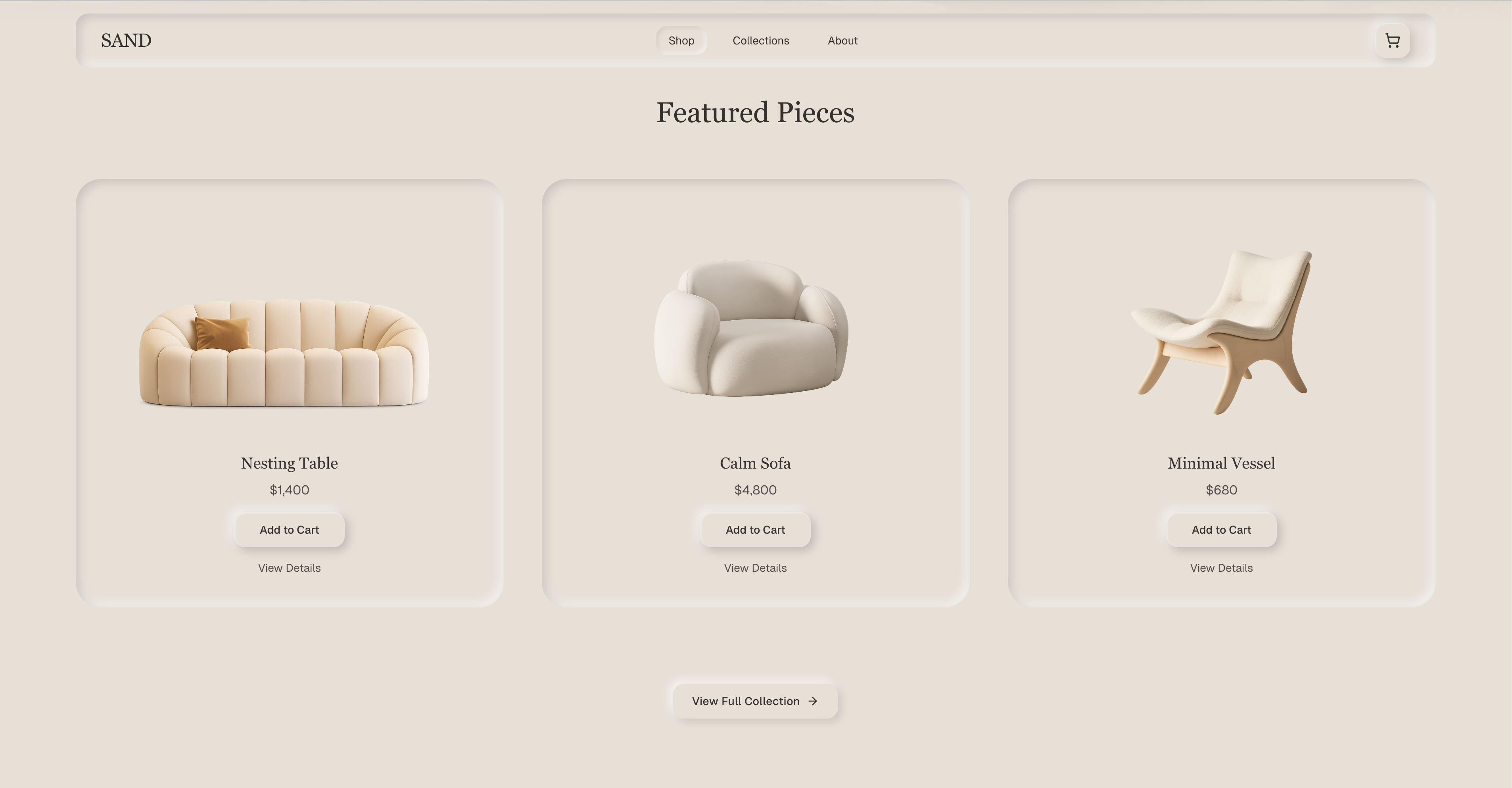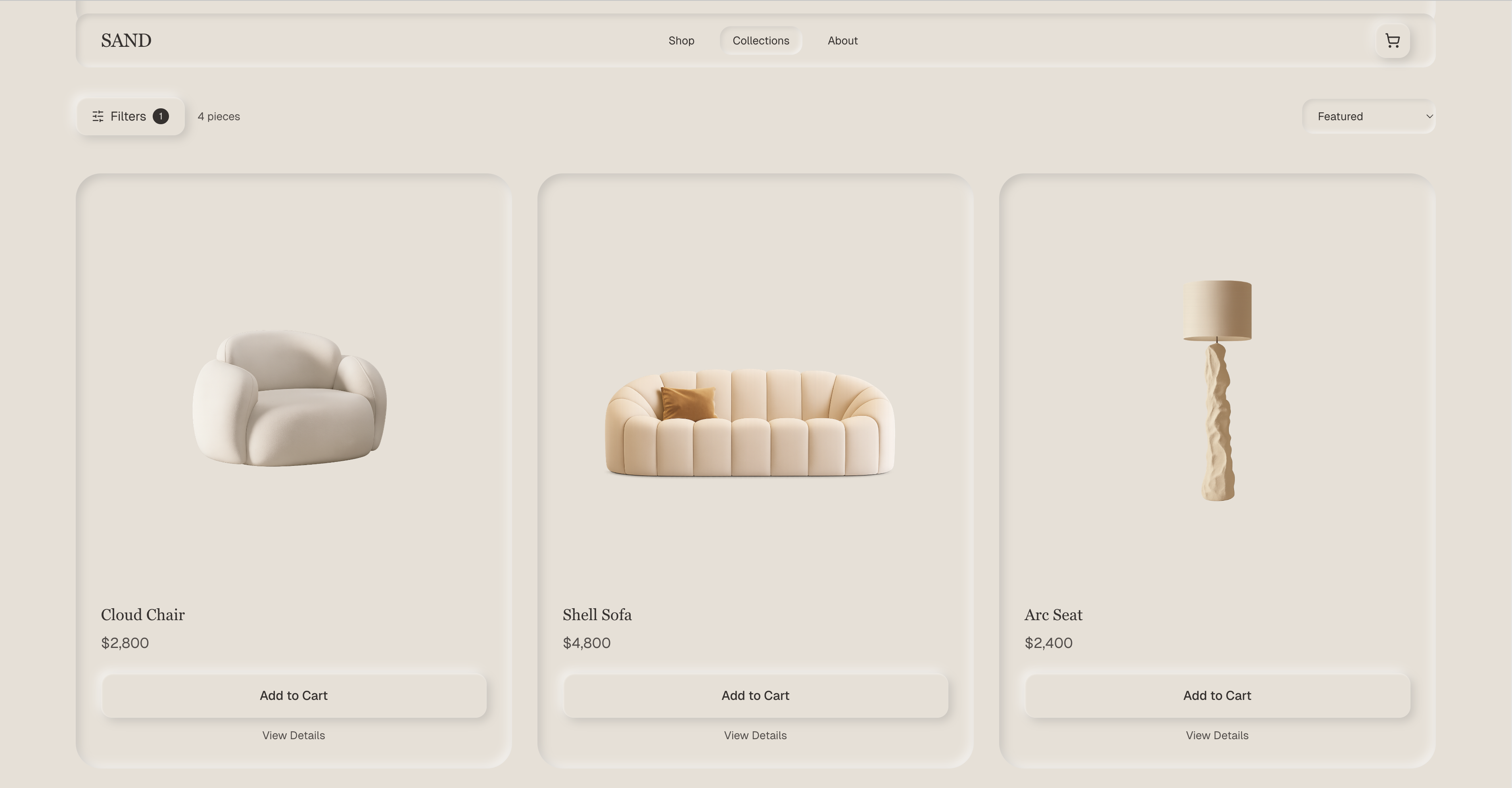 A web-based experience that allows users to explore products in a beautifully rendered 3D environment with smooth animations and interactive elements.